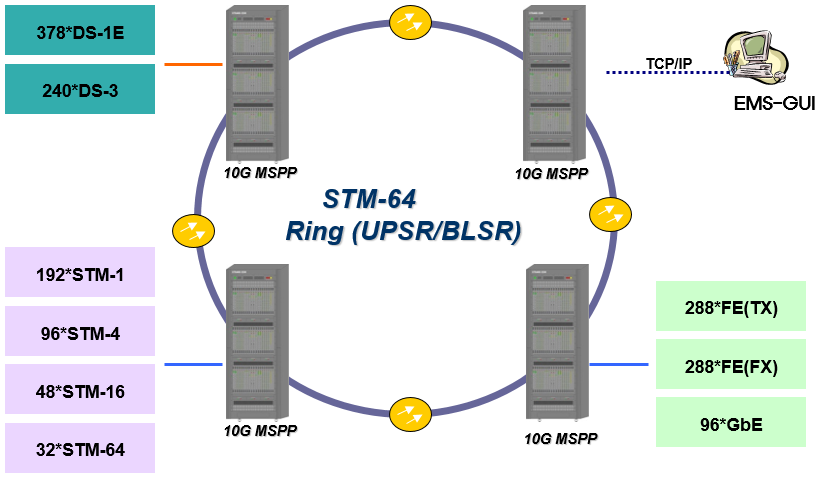 - TM/HUB/Ring(UPSR, BLSR) topologies supported